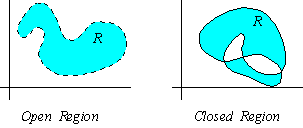 In this text, most of the sets in the xy-plane we encounter will be bounded by a closed curve. As a result, we define an open region to be the set of all points inside of but not including a closed curve, and we define a closed region to be the set of all points inside of and including a closed curve.