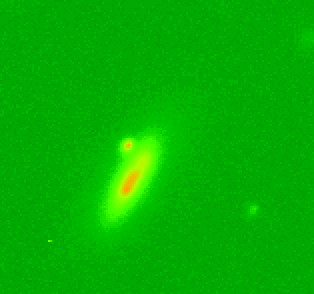 A spiral galaxy with a possible companion. The field of view is 1 arcminutes.