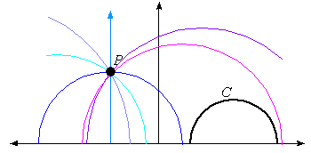 semi-circles centered on the x-axis that pass through P. This