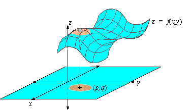 To begin with, we say that a function f( x,y) has a local maximum at a point ( p,q) if there is a circle centered
